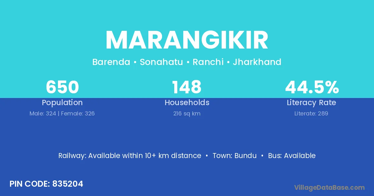 Marangikir village is located in the Sonahatu Subdivision of the Ranchi district in Jharkhand .