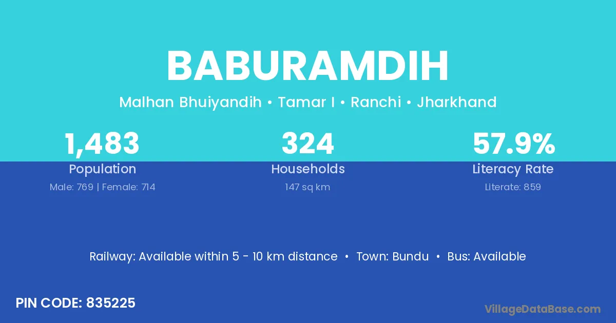 Baburamdih village has a total population of 1,483 people, of which 769 are males and 714 are females.