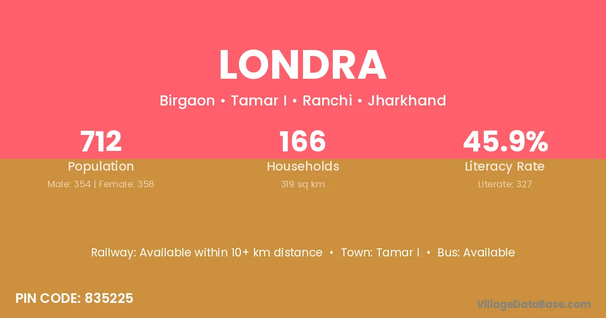 According to Census 2011 information, the village code of Londra village is 835225.