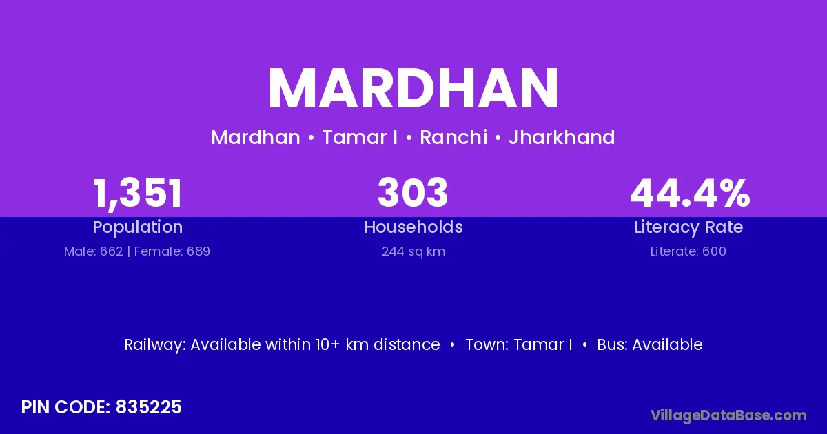 According to Census 2011 information, the village code of Mardhan village is 835225.