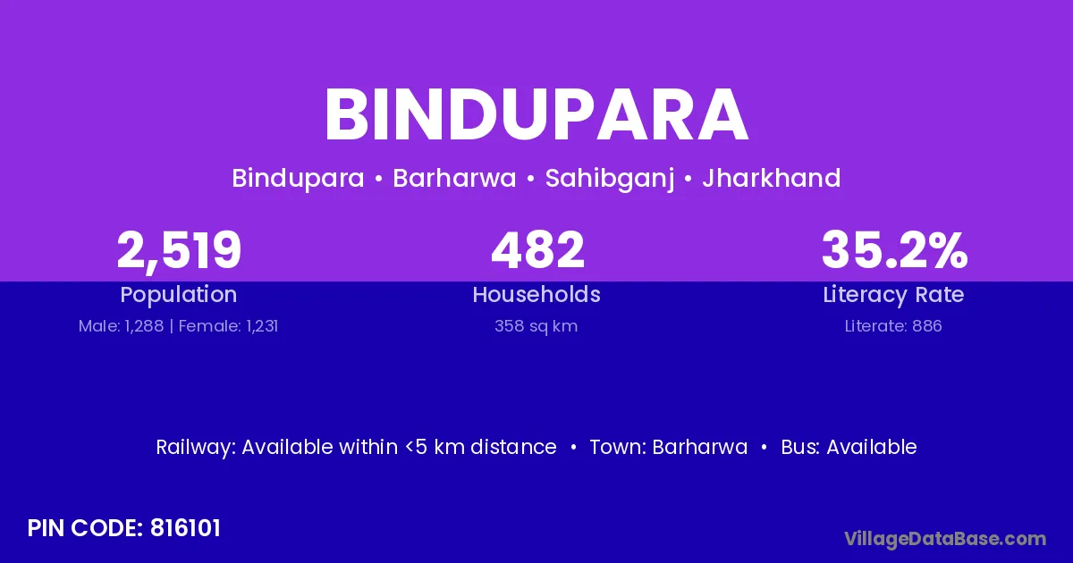 Barharwa is the nearest town to Bindupara village for major economic activities