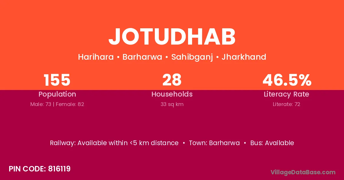 Barharwa is the nearest town to Jotudhab village for major economic activities