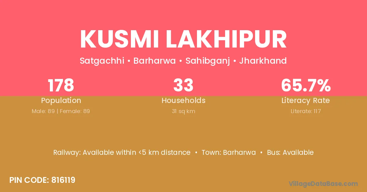 Barharwa is the nearest town to Kusmi Lakhipur village for major economic activities