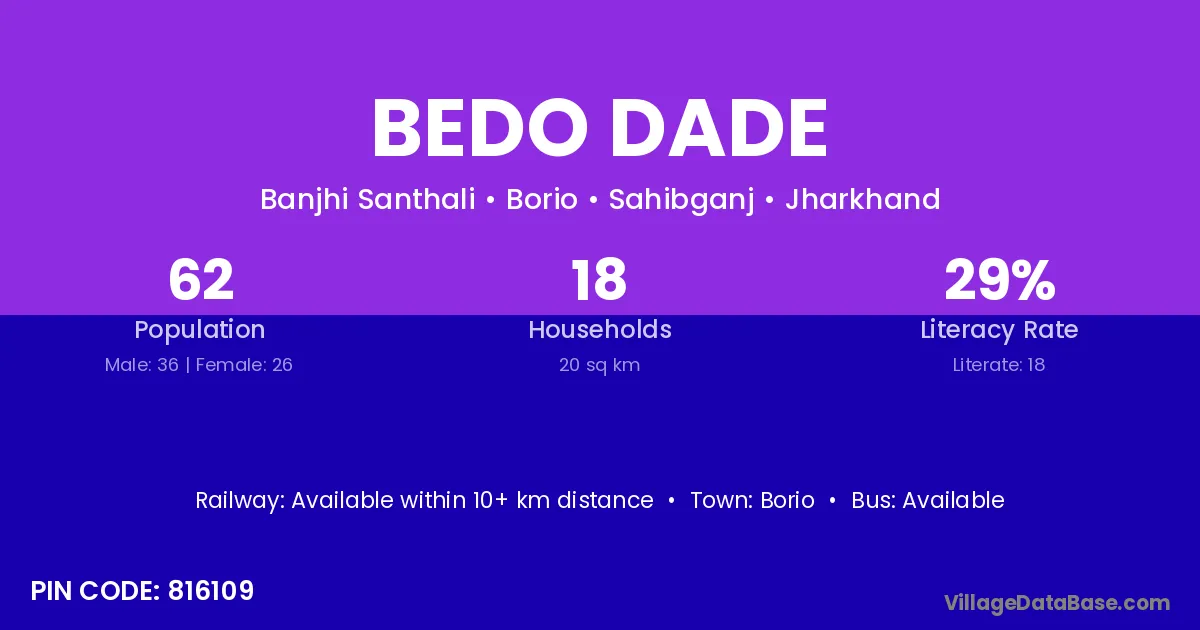 Bedo Dade village is located in the Borio Subdivision of the Sahibganj district in Jharkhand .