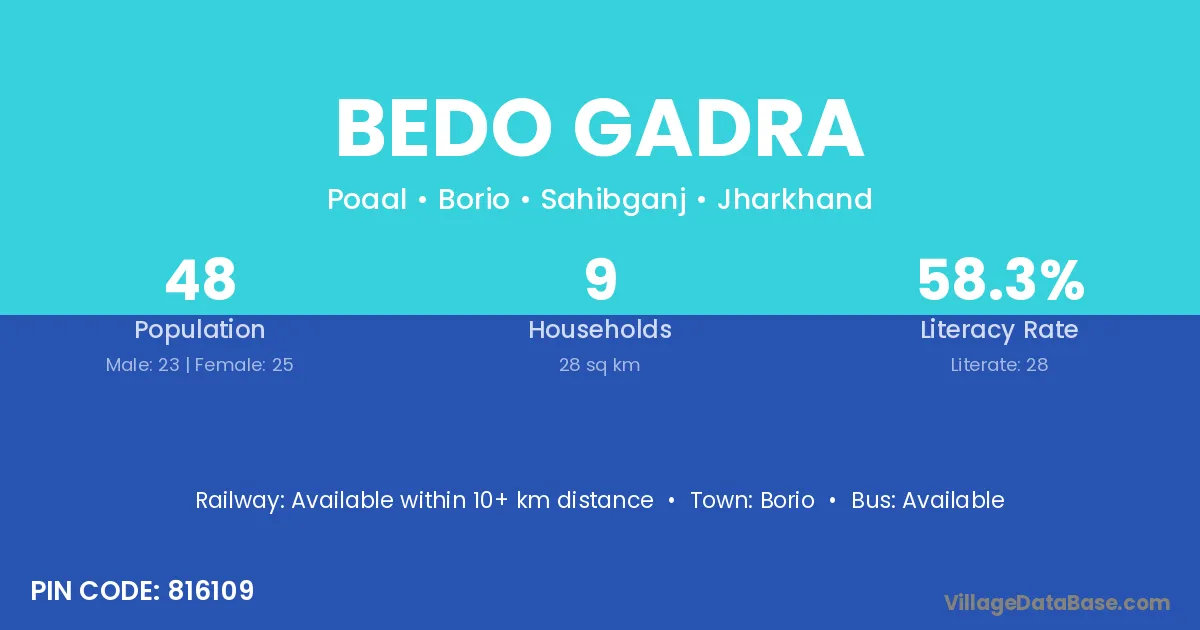 Bedo Gadra village is located in the Borio Subdivision of the Sahibganj district in Jharkhand .