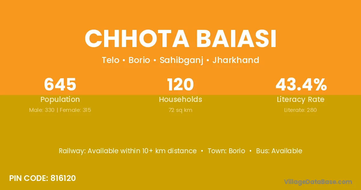 Chhota Baiasi village has a total population of 645 people, of which 330 are males and 315 are females.