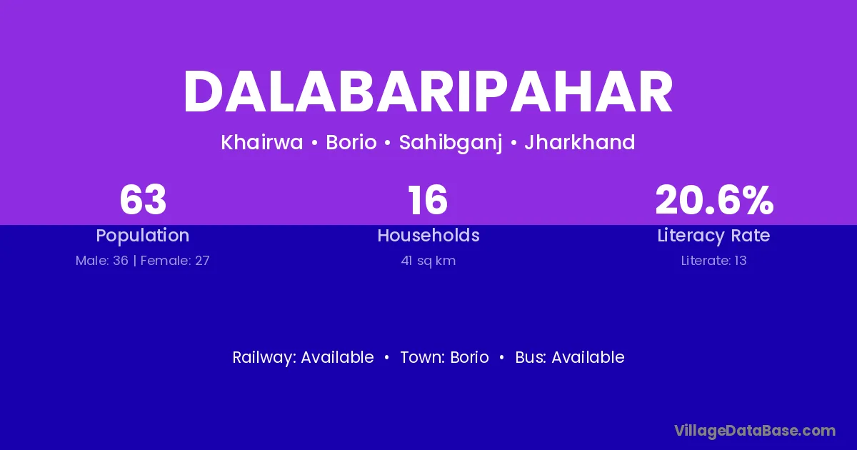 Dalabaripahar village has a total population of 63 people, of which 36 are males and 27 are females.