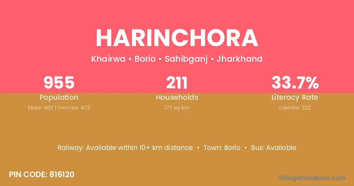 Harinchora village has a total population of 955 people, of which 482 are males and 473 are females.