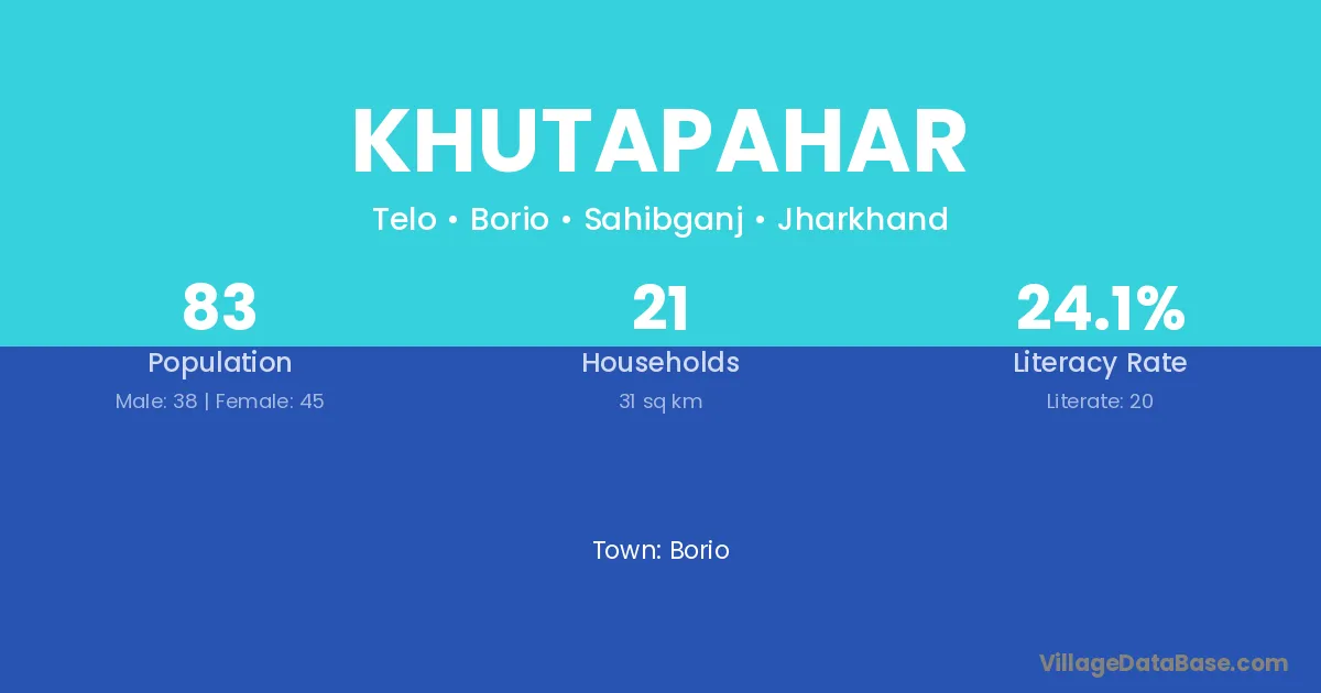 Khutapahar village has a total population of 83 people, of which 38 are males and 45 are females.