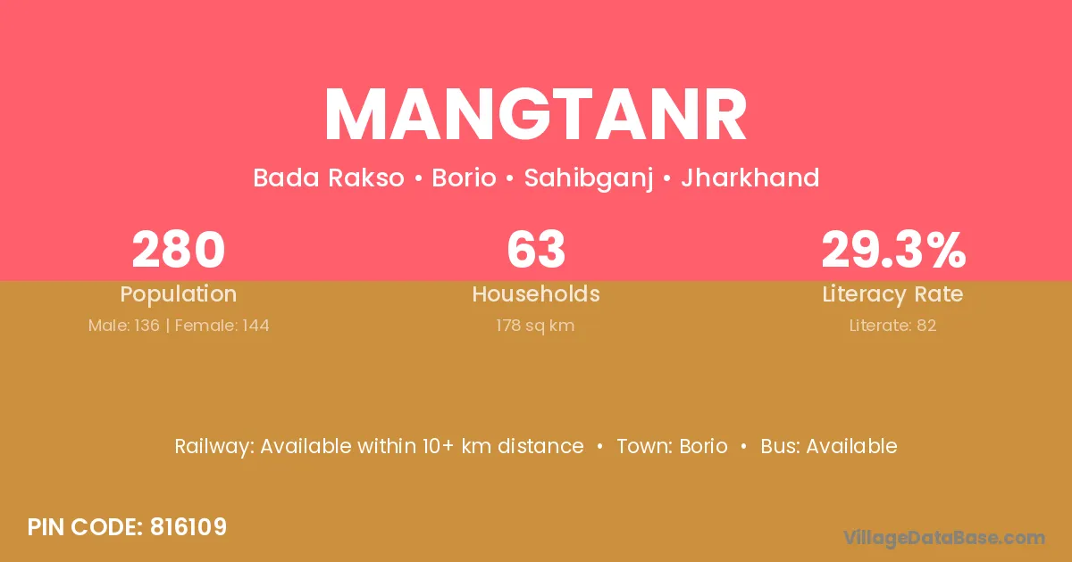 Mangtanr village has a total population of 280 people, of which 136 are males and 144 are females.