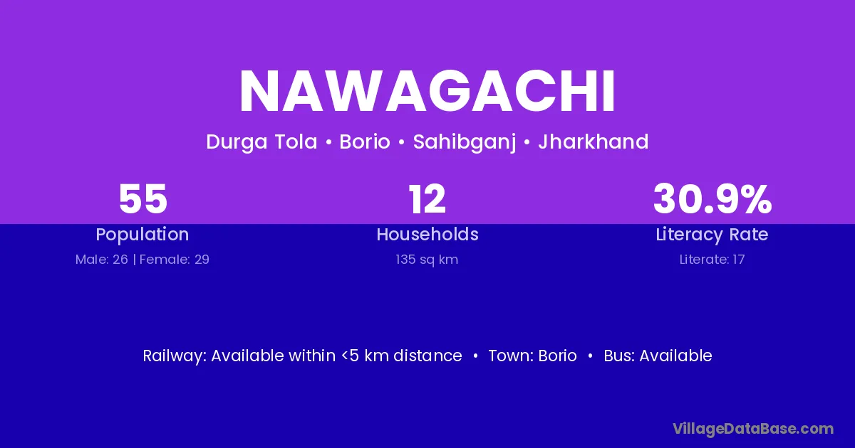 Nawagachi village has a total population of 55 people, of which 26 are males and 29 are females.