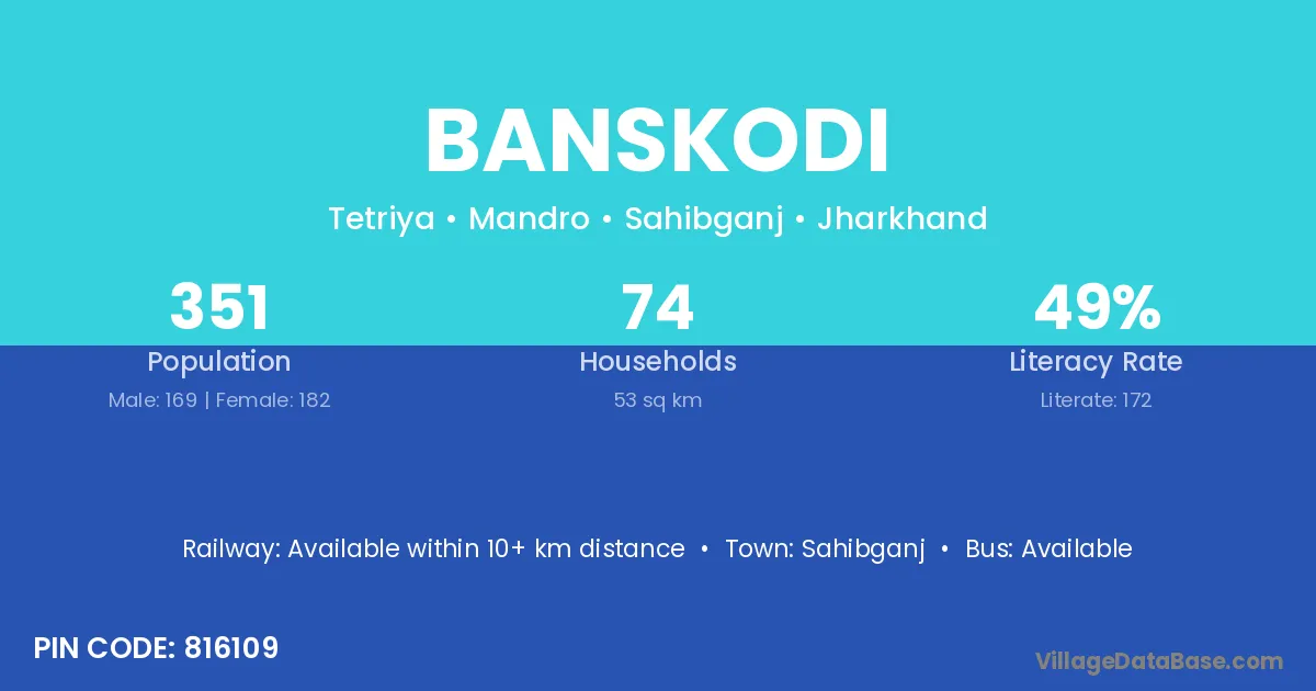 Sahibganj is the nearest town to Banskodi village for major economic activities