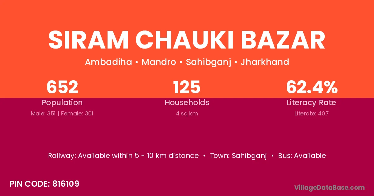 Sahibganj is the nearest town to Siram Chauki Bazar village for major economic activities