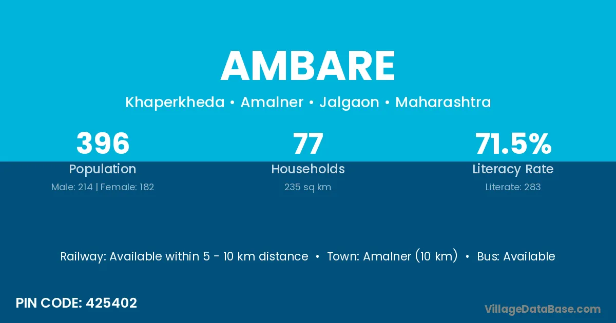 According to Census 2011 information, the village code of Ambare village is 815109.
