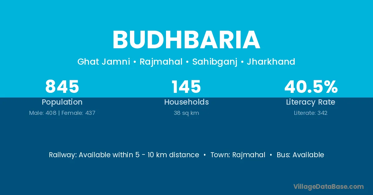 Budhbaria village has a total population of 845 people, of which 408 are males and 437 are females.