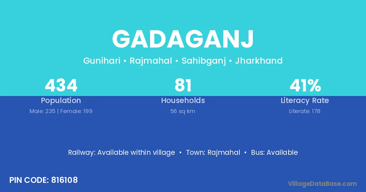 Rajmahal is the nearest town to Gadaganj village for major economic activities