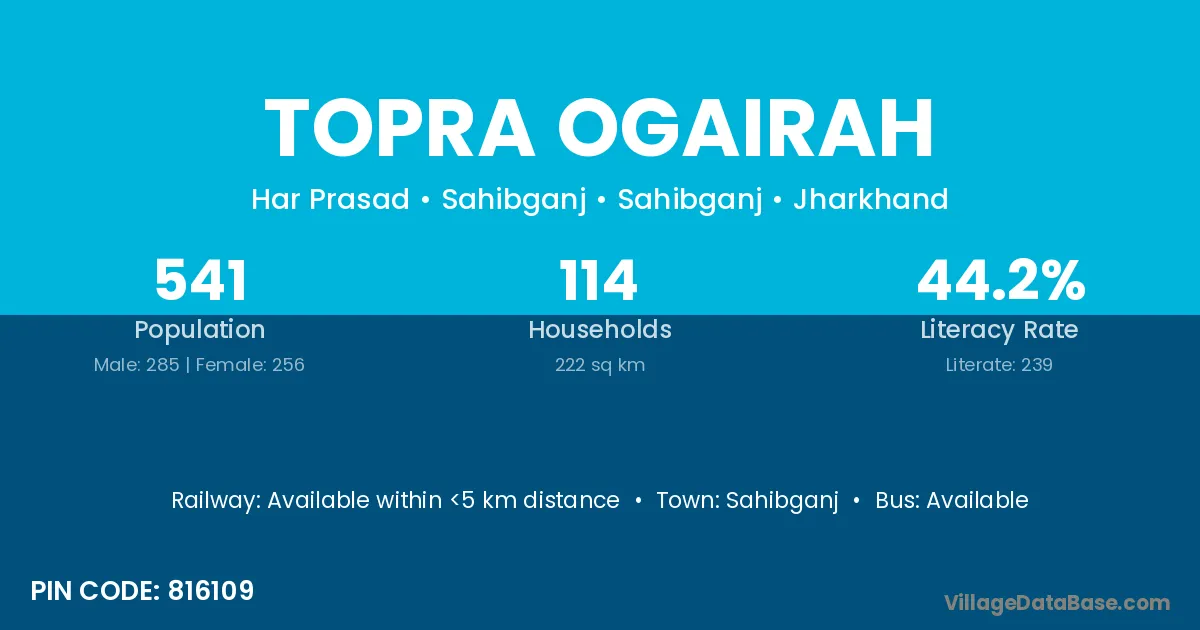 Sahibganj is the nearest town to Topra Ogairah village for major economic activities