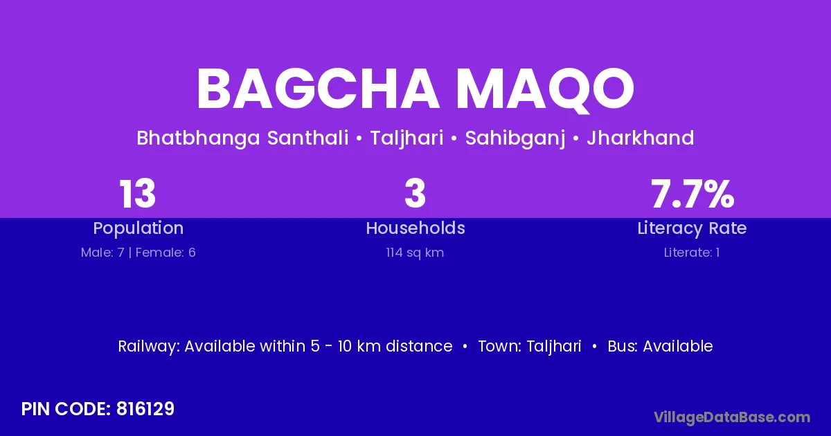 Taljhari is the nearest town to Bagcha Maqo village for major economic activities