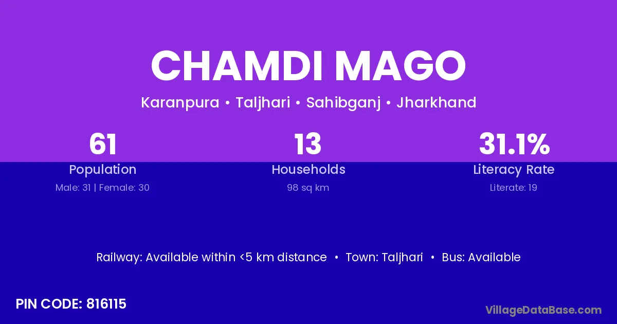 Taljhari is the nearest town to Chamdi Mago village for major economic activities