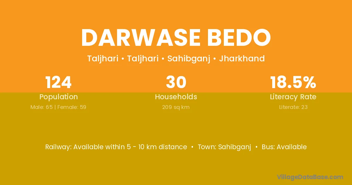 Sahibganj is the nearest town to Darwase Bedo village for major economic activities