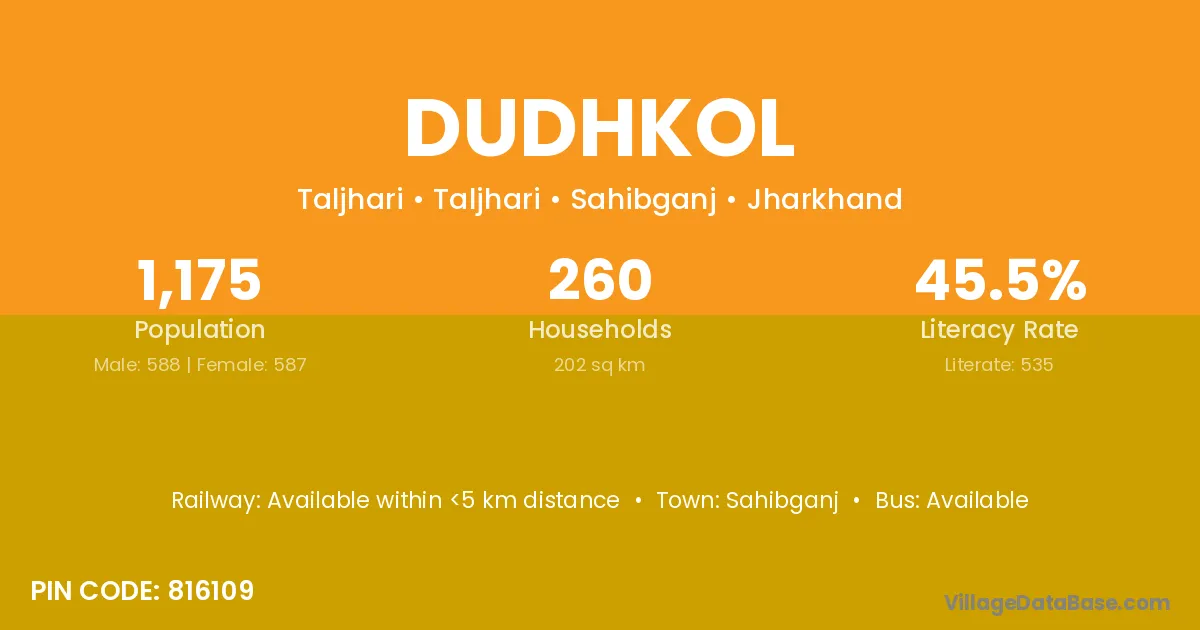 Sahibganj is the nearest town to Dudhkol village for major economic activities