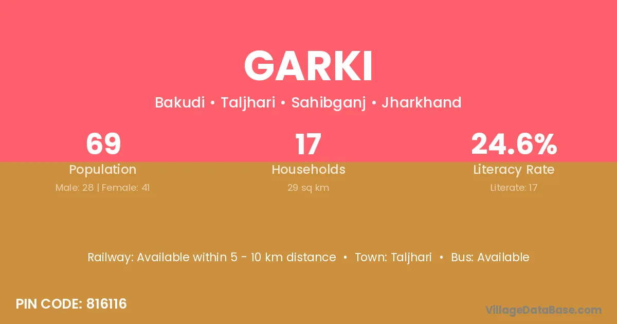 Garki village is located in the Taljhari Subdivision of the Sahibganj district in Jharkhand .