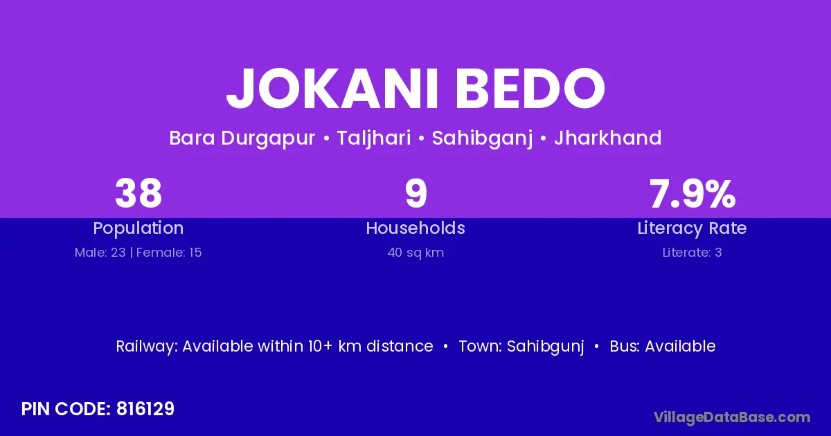 Sahibgunj is the nearest town to Jokani Bedo village for major economic activities