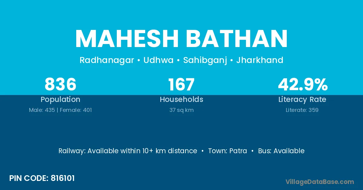 Mahesh Bathan village has a total population of 836 people, of which 435 are males and 401 are females.
