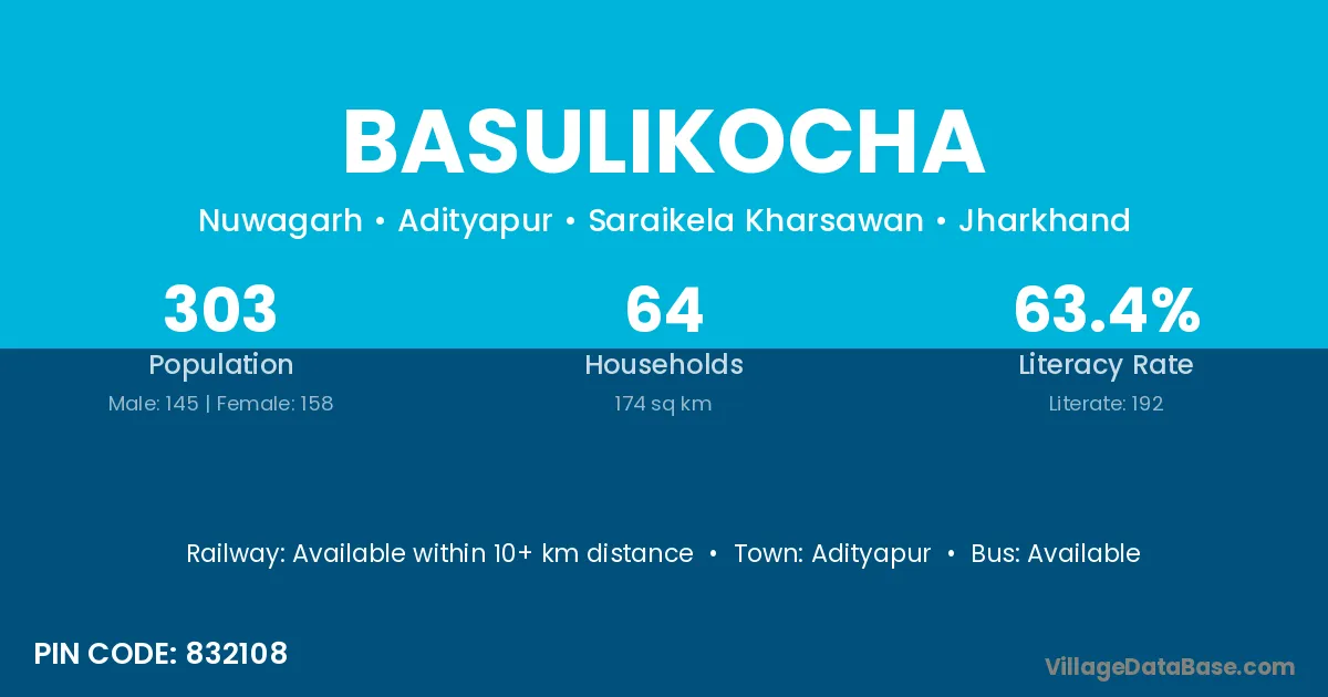 Adityapur is the nearest town to Basulikocha village for major economic activities