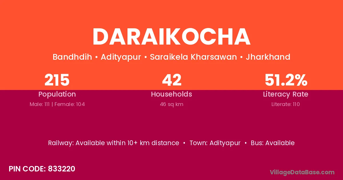 Adityapur is the nearest town to Daraikocha village for major economic activities
