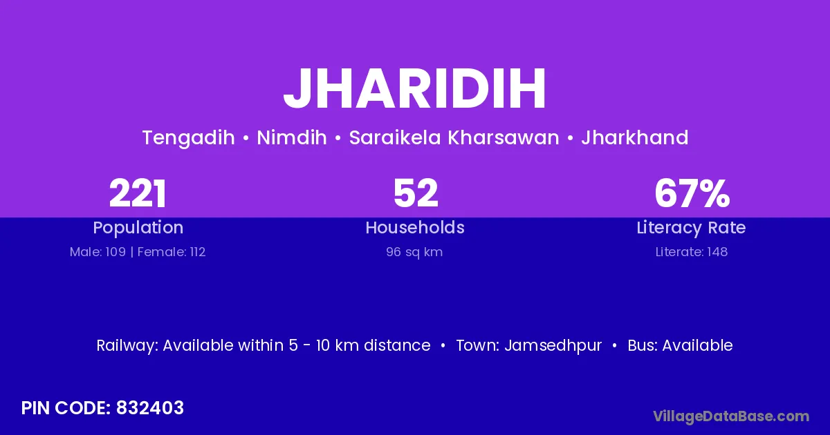 Jharidih village is located in the Adityapur Subdivision of the Saraikela Kharsawan district in Jharkhand .