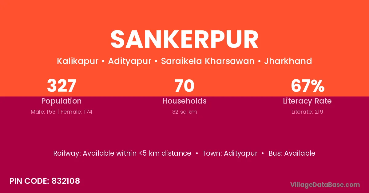 Adityapur is the nearest town to Sankerpur village for major economic activities