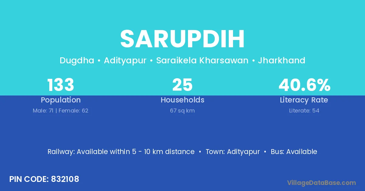 According to Census 2011 information, the village code of Sarupdih village is 832108.