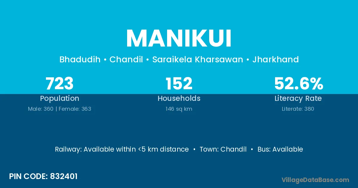 Chandil is the nearest town to Manikui village for major economic activities