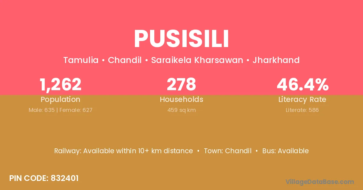 Chandil is the nearest town to Pusisili village for major economic activities