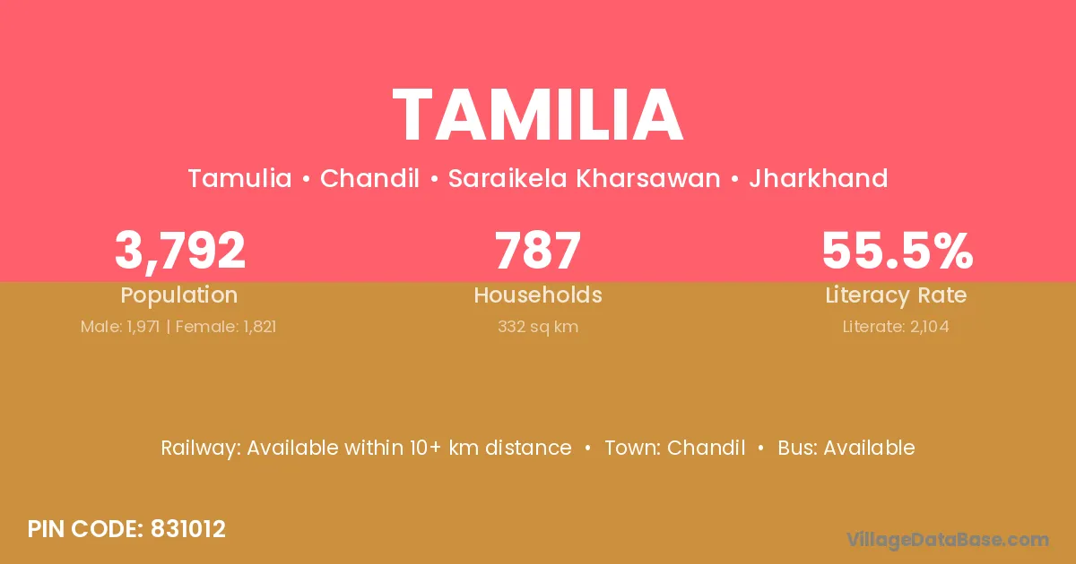 According to Census 2011 information, the village code of Tamilia village is 831012.