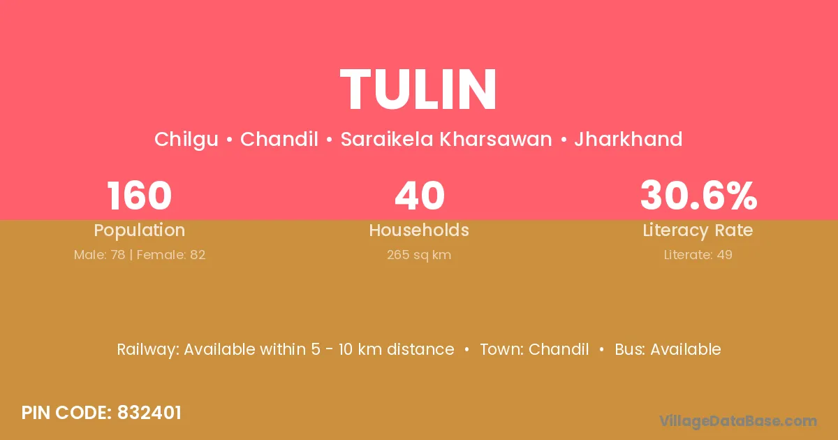 Chandil is the nearest town to Tulin village for major economic activities