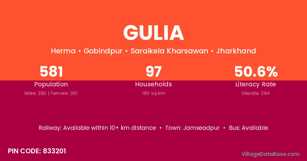 According to Census 2011 information, the village code of Gulia village is 833201.