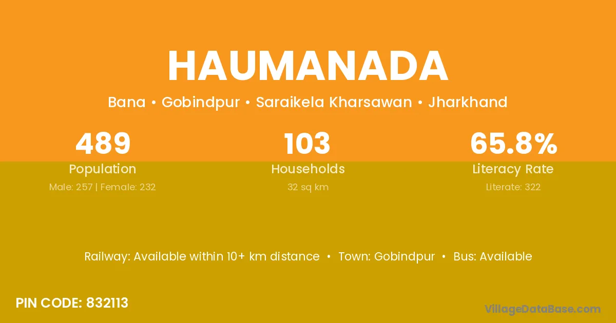 Haumanada village is located in the Gobindpur Subdivision of the Saraikela Kharsawan district in Jharkhand .
