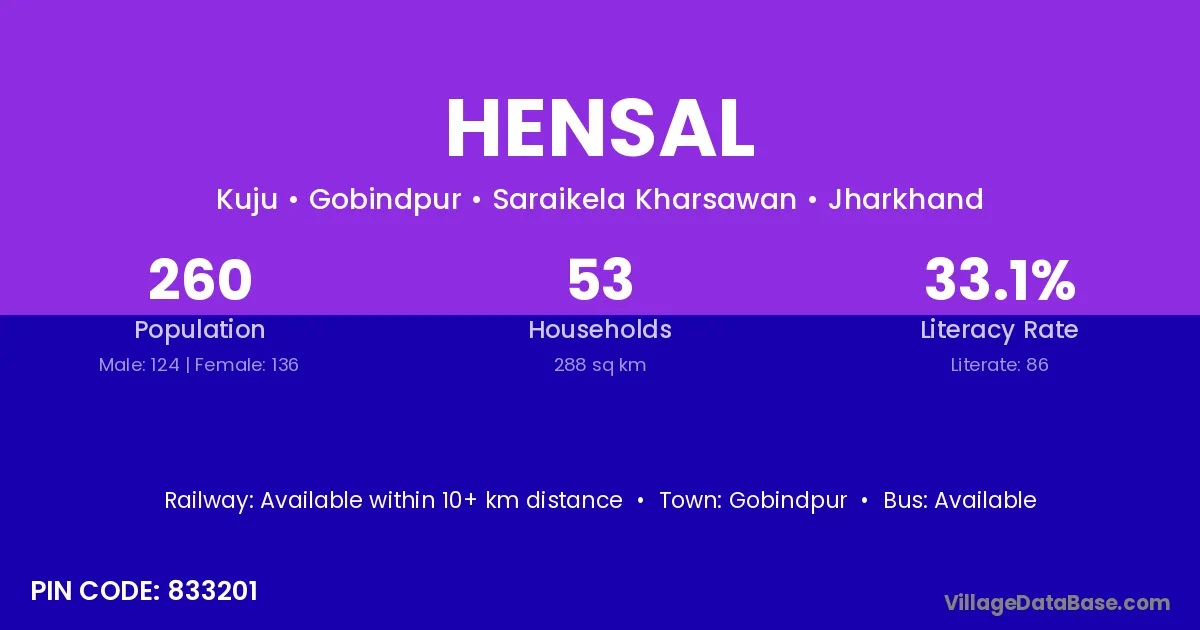 According to Census 2011 information, the village code of Hensal village is 833201.