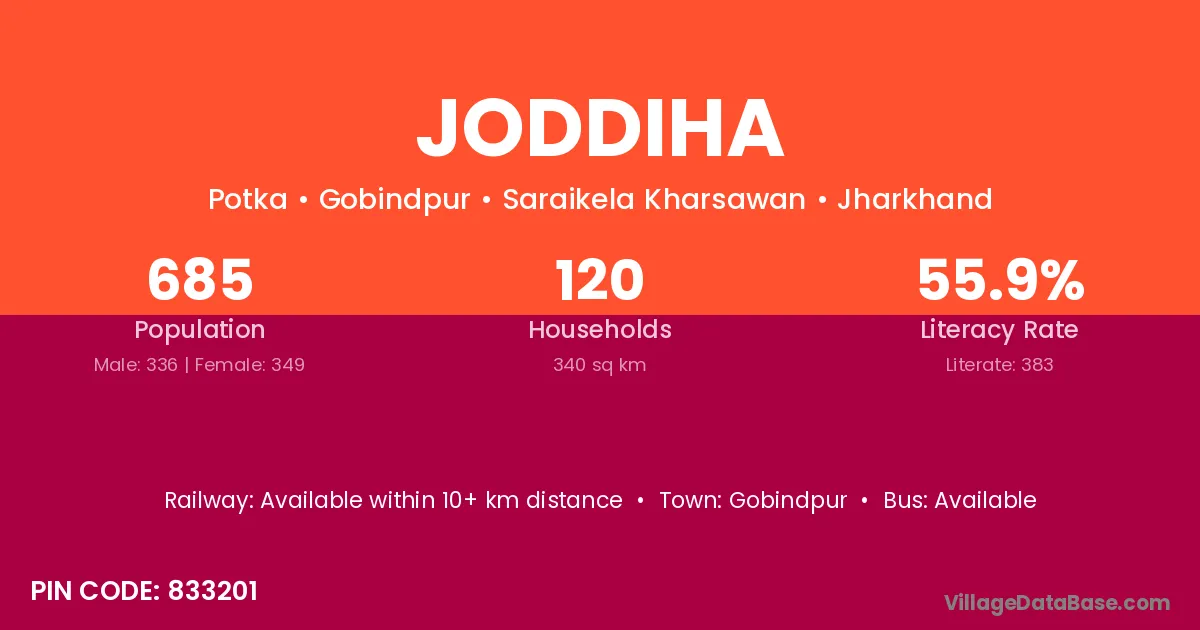 According to Census 2011 information, the village code of Joddiha village is 833201.