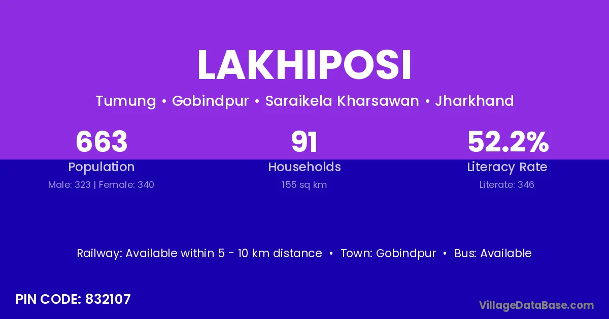 According to Census 2011 information, the village code of Lakhiposi village is 832107.