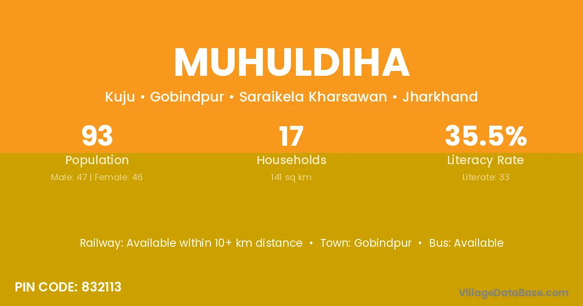 According to Census 2011 information, the village code of Muhuldiha village is 832113.