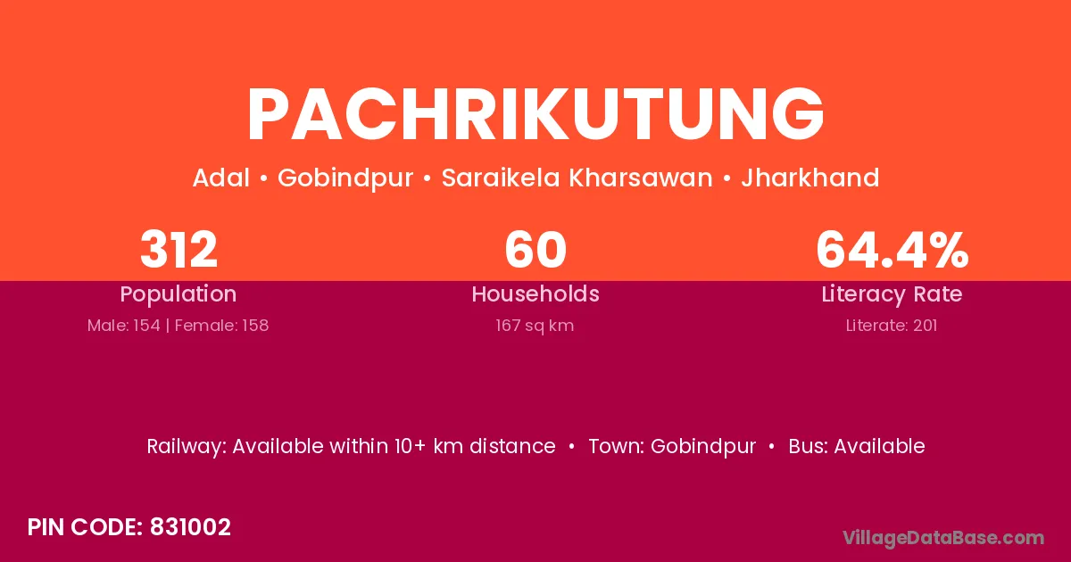Pachrikutung village has a total population of 312 people, of which 154 are males and 158 are females.