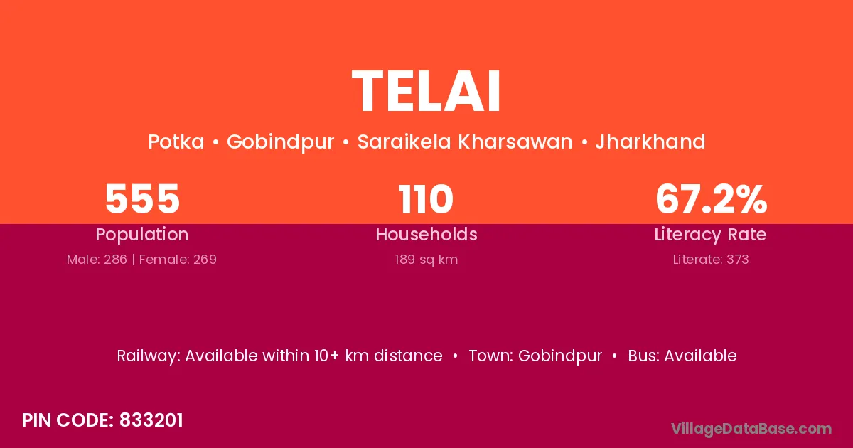 Telai village is located in the Gobindpur Subdivision of the Saraikela Kharsawan district in Jharkhand .