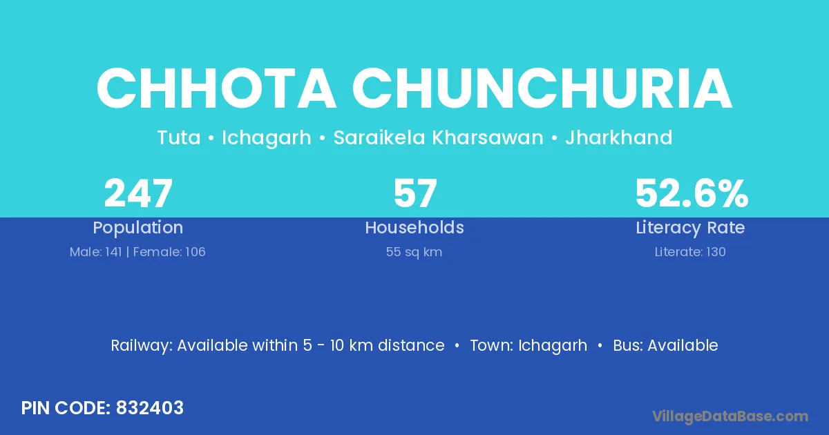 Chhota Chunchuria village has a total population of 247 people, of which 141 are males and 106 are females.
