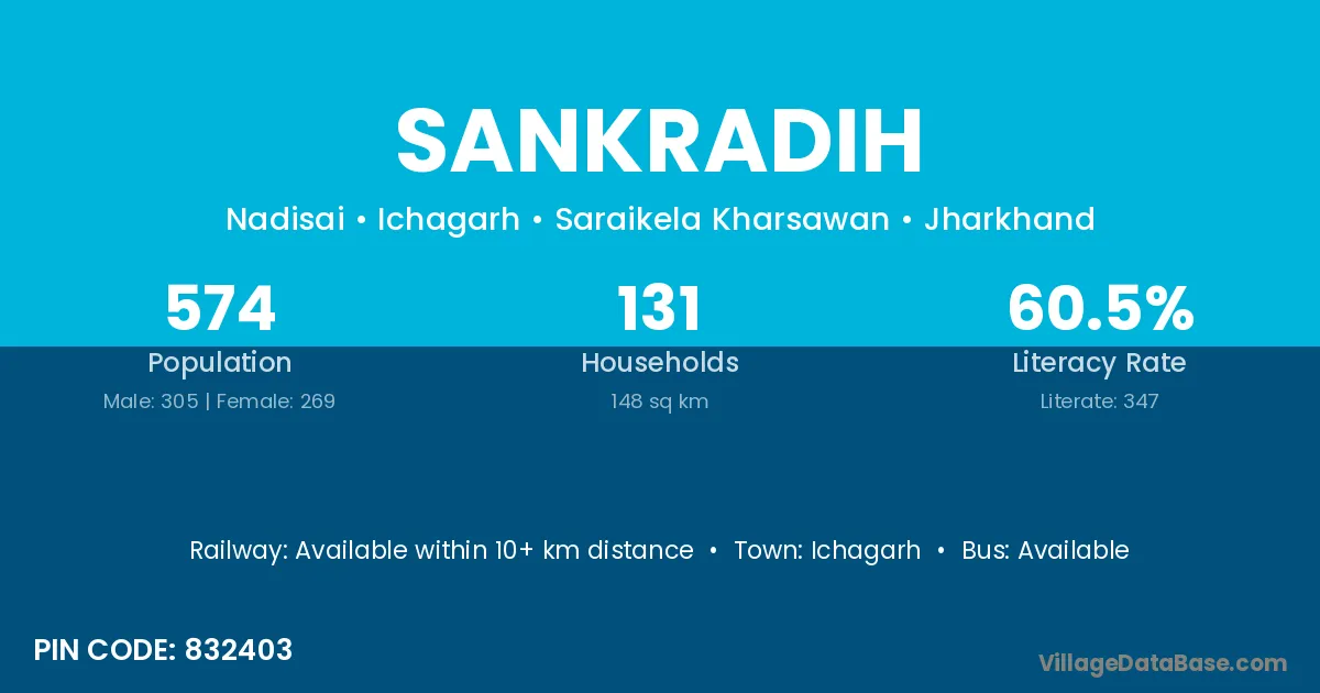 According to Census 2011 information, the village code of Sankradih village is 832403.