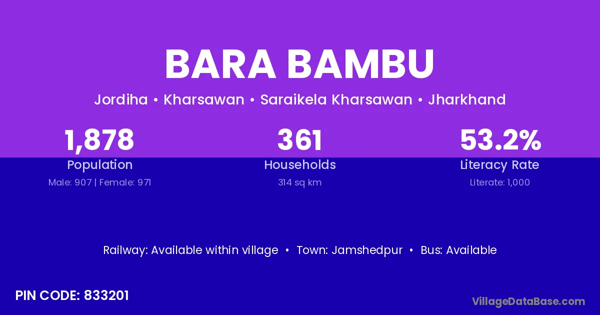 Jamshedpur is the nearest town to Bara Bambu village for major economic activities