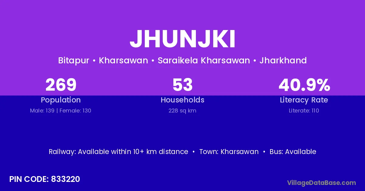 According to Census 2011 information, the village code of Jhunjki village is 833220.
