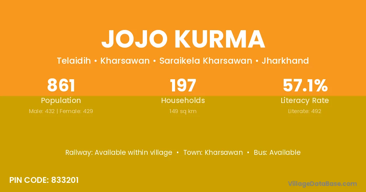 According to Census 2011 information, the village code of Jojo Kurma village is 833201.